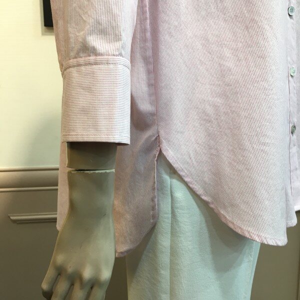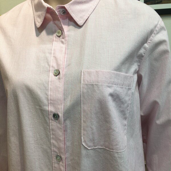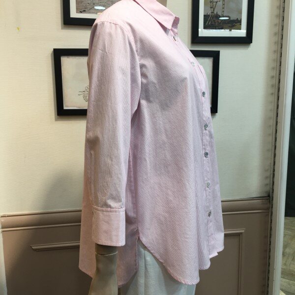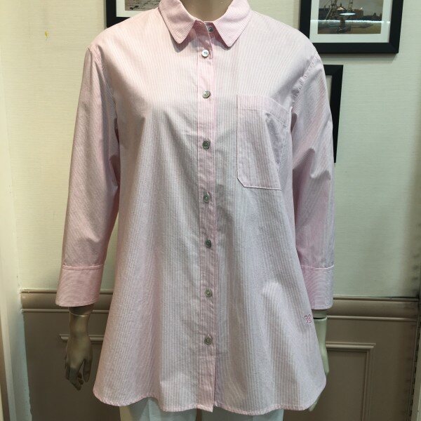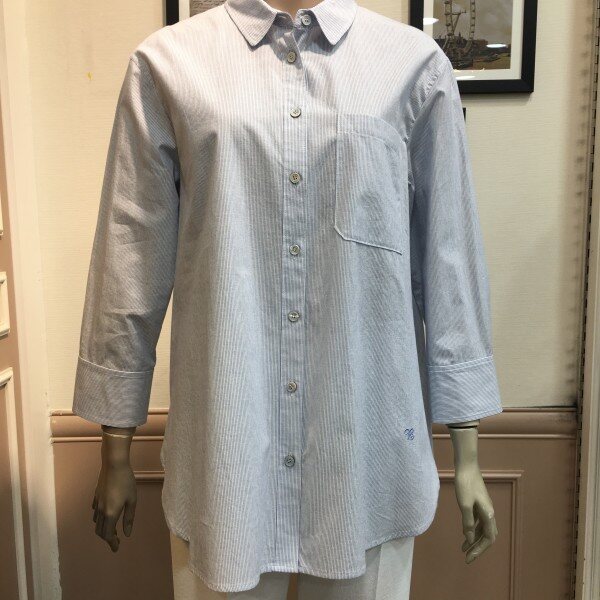 박시한 디자인의 스트라이프 셔츠입니다소매 9부 기장감입니다
