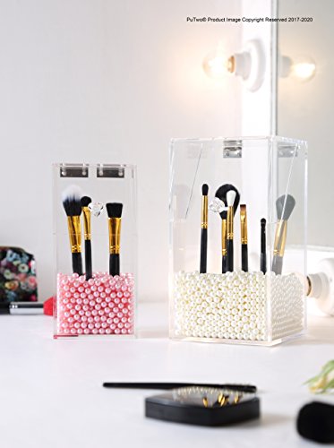 PuTwo Makeup Brush Holder Dustproof Acrylic Storage Box Makeup Organizer Pink Pearl Small 37.39 O