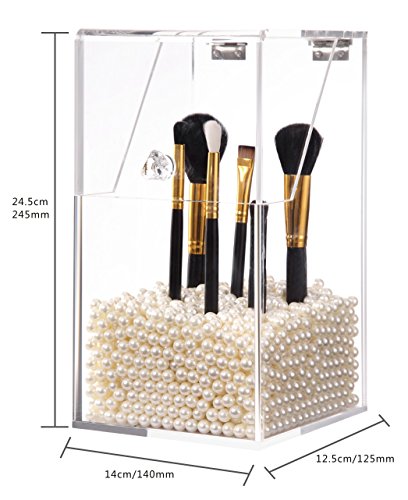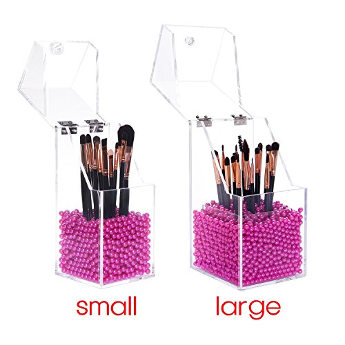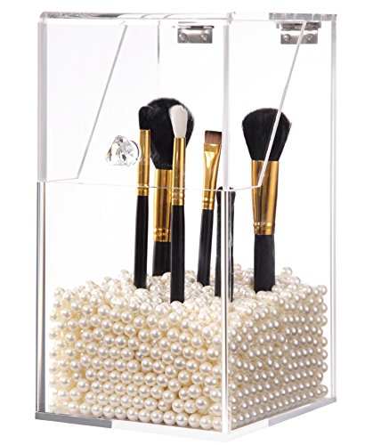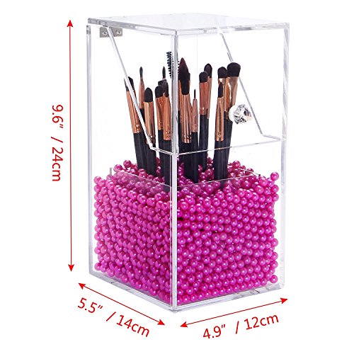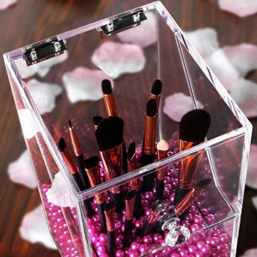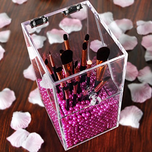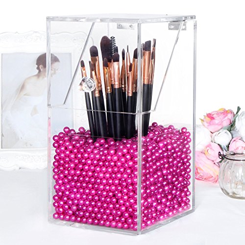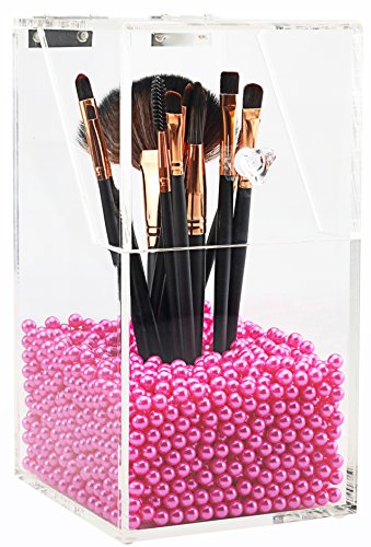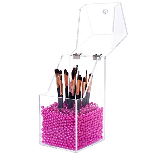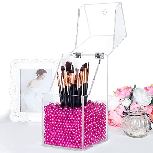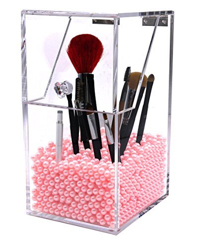 [Description] PREMIUM ACRYLIC - Constructed of 5mm thick premium acrylic to guarantee sturdiness and long lasting durability. We devote ourself to make the best organizer from the best materials_ at the most affordable prices for our customers! DUST-PROOF - Hinged lid prevents dust particles from entering the holder thus avoids dirt from making contact with makeup brushes. We hope this considerate design will give you the best shopping experience from our store. FILLER BEANS - Rosy pearl beans compliments the esthetic of the acrylic holder as well as effectively keeping the brush standing straight and organized for easy access. This shiny color will make your vanity prettier. It will be an amazing gift for girls who love makeup. HAND-MADE - The crystal clear acrylic brush holder is handcrafted with exquisite precision to ensure superior quality. We``ve garnered passions from professional makeup artists and amateur enthusiasts alike in order to design the most convenient and dynamic cosmetic collection. EASY TO CLEAN - This brush holder will make your life easier not only does it keep your brushes neat and tidy_ but also very easy to clean. Simply dampen a cloth with a little soap and water_ and wipe it down. Keep all of your brushes clean and catalogued with the use of our premium acrylic brush holder.