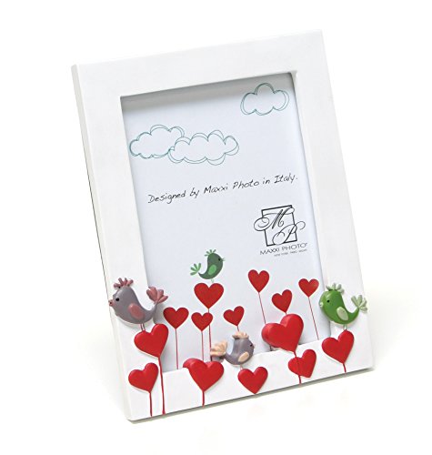 Maxxi Designs Photo Frame with Easel Back, 5 x 7", Polyresin White Flower Hearts Fantasy