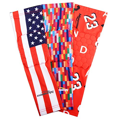 -. Feature : Package included -1 Pair (2 Pieces) Sleeve;EVA PAD protect kids and aldults'elbow from being hurt during doing sports Fit tensile strength for basketball,baseball,football,Cycling,Golf Outdoor and Indoor etc. / Coolomg Special Material C.O. - Made In Italy; Nice workmanship. Mix resin to reduce tear; UV protection over 98%. Air-permeable fabric wicks moisture away from the skin, you would feel comfortable all the time. Compression material maintains muscle warmth and prevents abrasions. Helps relieve muscle and joint pain, stiffness, and soreness. Keep elasticity after washes. / Coolomg P.R.Int Technology - Using Environmental Italian Ink, safe and soft for you or your kids skin, no fade after washes. (Machine washable and dryable, hand wash and air-dry is highly recommand) / Coolomg Non-Slip Strip - Special anti-slip designed by Coolomg. Prevents slipping down. Environmentally material prevent allergies. / Coolomg Care Plan: 100% Lifetime Guarantee Warranty; No Reason Refund; No Reason Resend. (Whoever you or your kids, whatever teared or ripped, just send pictures to us, Coolomg would be free to send same item to you.)