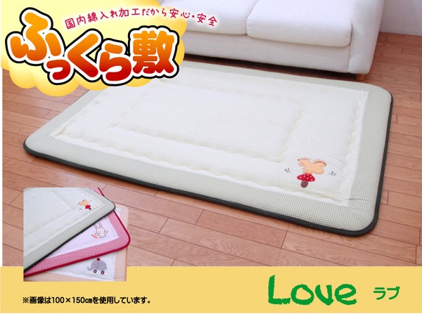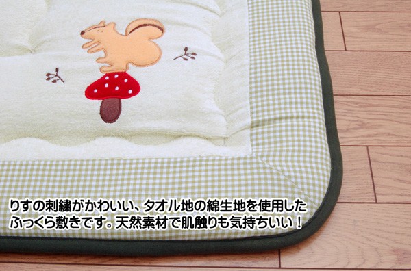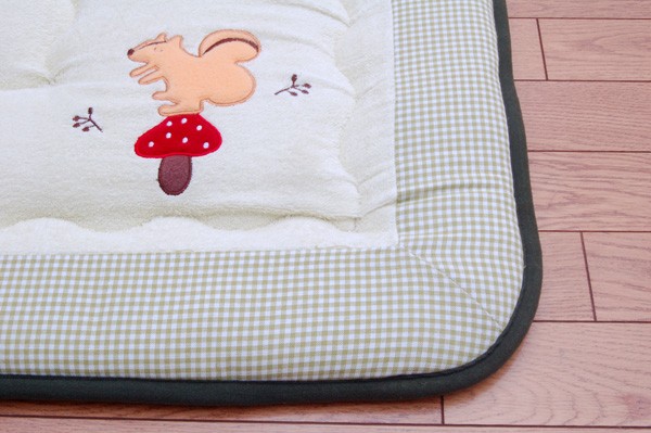 【商品名】国産(日本製)固綿40mm使用 タオル地 ふっくら敷 『ラブF敷』 100×150cm(リス刺繍入り)