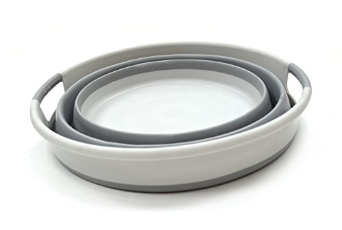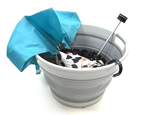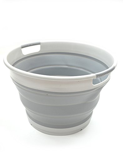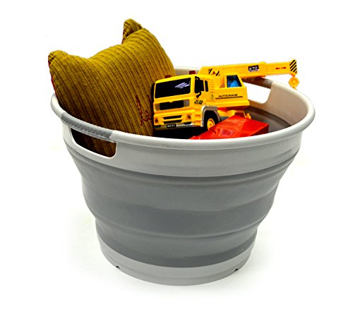 SAMMART Collapsible Round Tub - Foldable Storage Container / Organizer - Portable Washing Bin - Space Saving Laundry Hamper / Basket - Collapsible Washing-up Bucket (Grey)