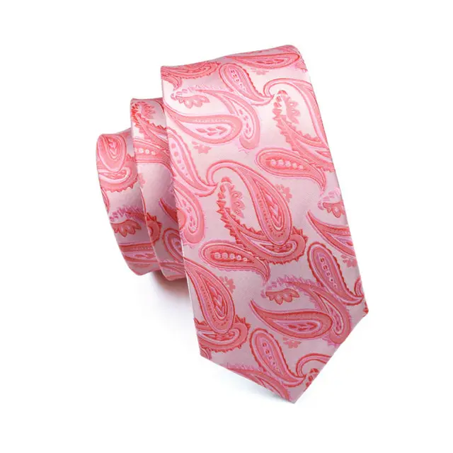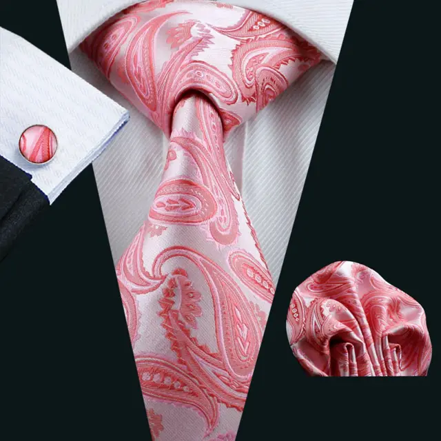 LS-1066 2016 남성 넥타이 핑크 페이즐리 100% 실크 자카드 짠 Gravata 넥타이 손수건 커프스 세트 남성 정장 웨딩 파티 비즈니스