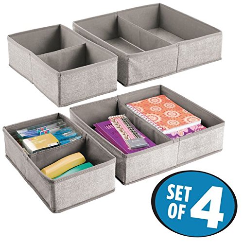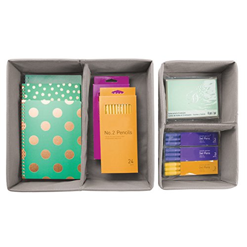 mDesign Office Drawer Storage Organizer Set for Pens, Pencils, Notepads - Set of 4, 2 Compartments Each, Linen