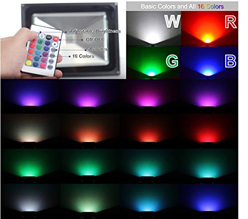 - MULTI-COLOR & REMOTE CONTROLLER: 16 color tones provide colorful and bright illumination across wide area. Ideal for outdoor and indoor applications such as stage, garden, party, security light, hotel, landscapes, etc.