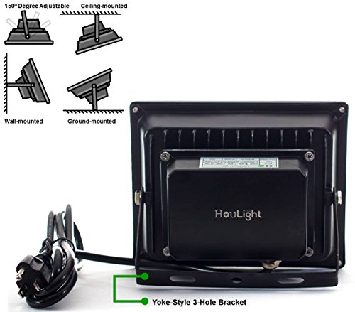 HouLight High Power 50W RGB LED Flood Light IP65-Waterproof (85V-265V AC) 16 Colors 4 Modes with US Plug for Park, Garden, and Stage