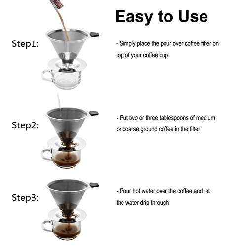 -. Brand : BESTTRENDY -. Color : Silver -. EAN : 0742354891209 -. Feature : COMPLETE POUR OVER COFFEE DRIPPER - in one clever and simple-to-use stand alone drip coffee cone that gives you the power of a professional barista at home or when you travel; works manually with any ground coffee or flavors, offering a delicious taste of a 1 - 2 cups of coffee in less time than other sources; saves time and money; perfect for the coffee connoisseur that appreciates richer, bolder flavors and the unique enjoyment that comes with hand-crafting a perfect cup of joe. / TOP QUALITY MATERIALS - our fine mesh dual stainless coffee filter is made of the highest quality stainless steel without using paper filters; its reinforced steel mesh is extra durable, allowing brewing at the perfect rate; the bottom base will stay on and not break; with the extra fine wire mesh at the lower part of the filter; no grounds end up in your cup. / SIMPLE TO USE - being compact and lightweight, the coffee drip cone works great at home or work or while traveling or camping; simply heat the pour over coffee filter with hot water and rinse out, add coffee grounds, slowly pour in the hot water, let the coffee maker drip out the water through the fine pour over filter, and remove the coffee dripper when done, ready to enjoy your drink. / EASY TO CLEAN AND NO USE OF PAPER COFFEE FILTERS - once done using the coffee brewer, rinse it quickly by hand and immediately use it again for another flavor; since it is a reusable coffee strainer made from stainless steel, it is better quality than plastic, ceramic, or glass coffee filters, it saves you money not buying paper coffee filters. / MONEY BACK GUARANTEE - BestTrendy is committed to providing a superior coffee drinking experience with coffee accessories you love. As such, if you aren't satisfied with your purchase, contact us within thirty days, and we'll issue you a full refund. -. Label : BSETTRENDY -. Manufacturer : BSETTRENDY -. Model : BestTrendy Coffee Filter -. MPN : BestTrendy Coffee Filter -. PartNumber : BestTrendy Coffee Filter -. ProductGroup : Kitchen -. ProductTypeName : KITCHEN -. Publisher : BSETTRENDY -. Studio : BSETTRENDY -. Title : BestTrendy Pour Over Coffee Filter, Stainless Steel Drip Cone Coffee Filter - Paperless & Reusable - Permanent Coffee Dripper for 1-4 Cups -. UPC : 742354891209