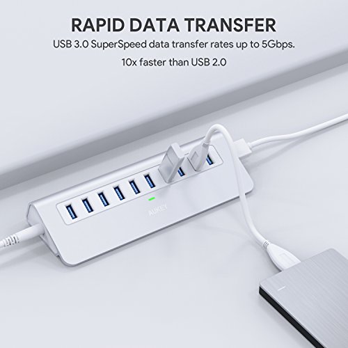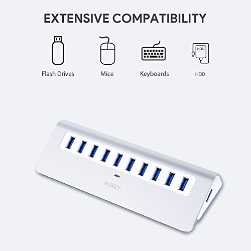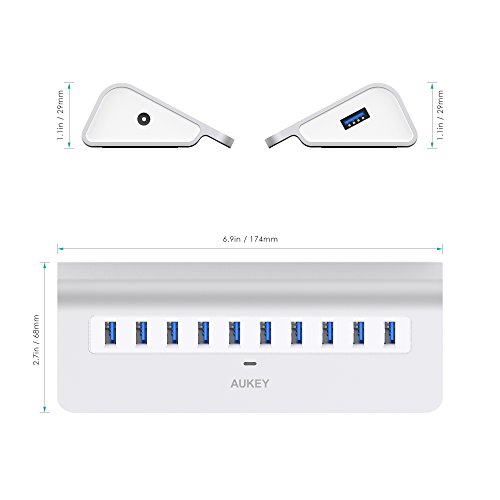 Package Contents: AUKEY CB-H6 10-Port USB 3.0 Hub, 3.3ft USB 3.0 A to A Cable, 12V / 3A Power Adapter, User Manual, 45-Day Money Back Guarantee and 24-Month Product Replacement Warranty Card