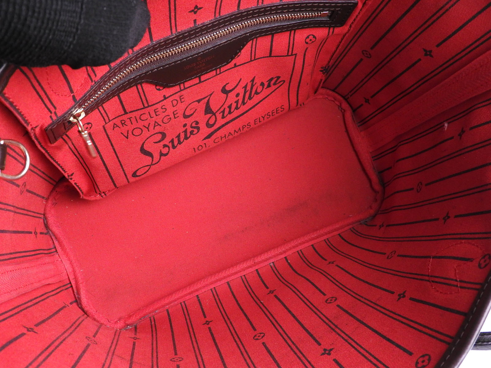 | Exterior | Damier: Used feeling. Some stains and slight darkening. Leather: Used feeling. Some scuffs and wrinkles. |