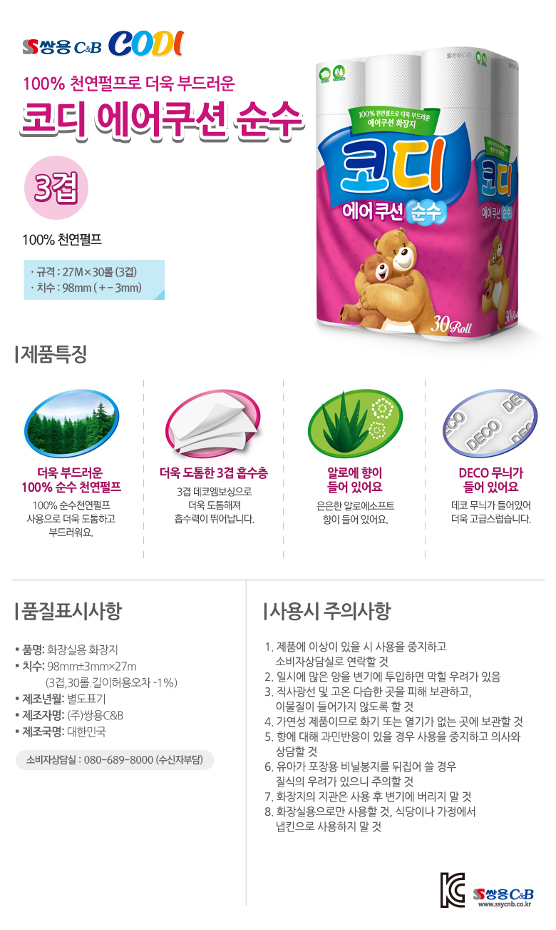 - 품명 및 모델명코디 에어쿠션 순수 27*30