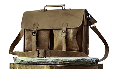 -. Feature : Genuine Leather Messenger Bag for Men - Handcrafted to Perfection - SIZE: 16" Width / 12" Height / 4" Deep / Best fit for 15 Inch Laptop Macbook Computer, Has an iPad Sleeve and 3 Internal Compartments / Red Vintage Rustic Style Messenger Bag is the best match for your office, outdoor, holidays, college, schools, camping etc. / Strong & Durable: Brass Fittings & Buckles, YKK Zippers, Olive Green Heavy Duty Canvas Lining...Built to Last: This leather satchel features quality stitching, brass buckles & strong zippers. Ultra-durable, reliable & secure. Even has heavy-duty canvas & Velcro strap to protect contents. / Multiple Carry Options: With a convenient, adjustable shoulder strap & sturdy handle, this brown laptop bag can be worn on shoulder, cross body or in hand. Great for bikes & buses