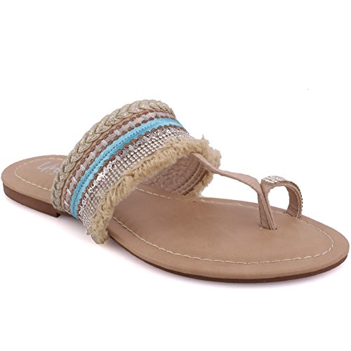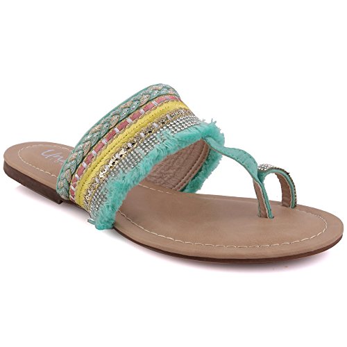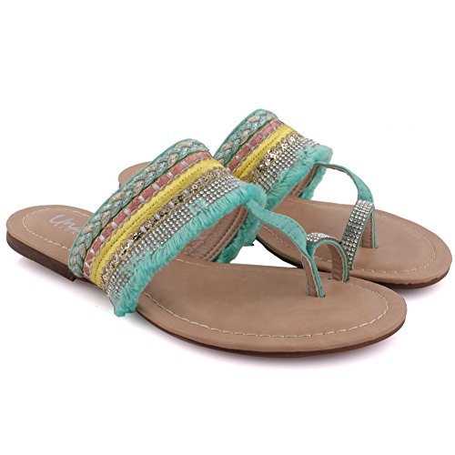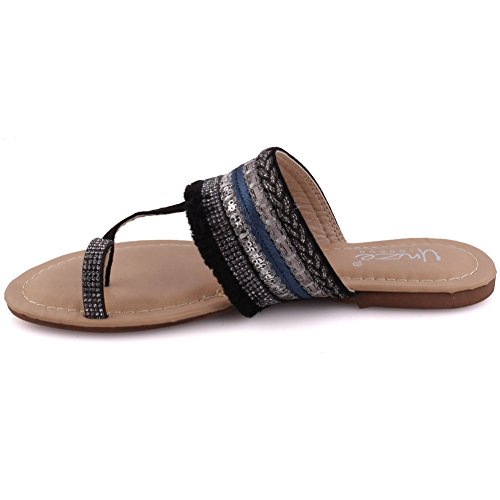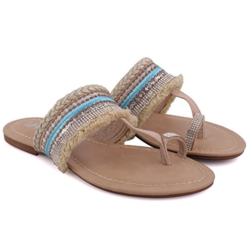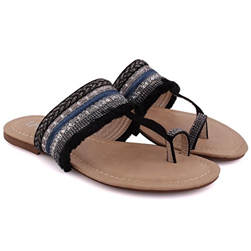 Binding : Apparel Product Description A playful design which will take you to from lounge to playground. These decorated summer sandals surely have the guts. Toe ring construction with designed fabric detailing upper. Open toe design with easy slip on construction. Padded footbed while decorated upper. Soft PU made upper, while PU lining and sole that gives ultimate comfort. Flat sole that has crepe pattern to add grip while walking. 0