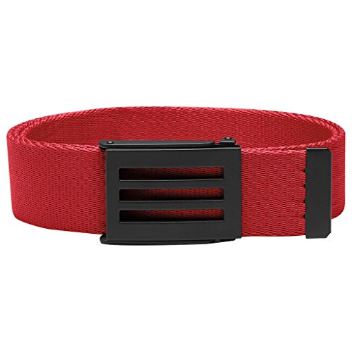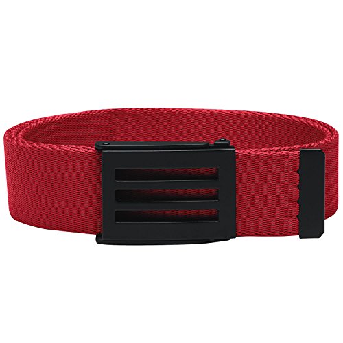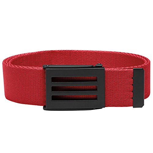 Product Description Stylish and Funky Adidas Webbing Belt from the latest 2016 Adidas Golf Collection.This funky golf belt features matte black finished clamp buckle with 3-Stripes cut-out window detail. 0