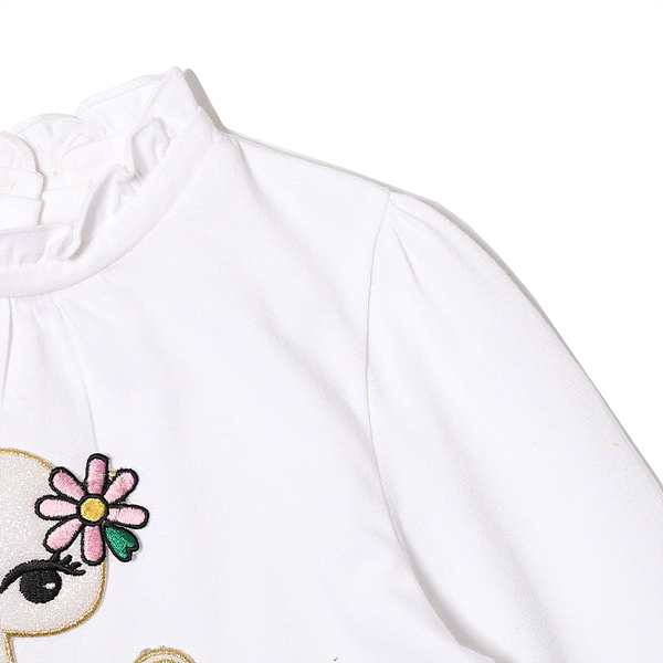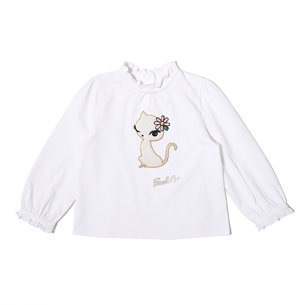 상품설명 화이트 컬러의 프릴 티셔츠입니다. 단독으로 입어도 좋지만 제원단 목프릴로 탑과 코디하시기 매우 유용한 아이템입니다. 목중심에 셔링이 들어가서 풍성한 라인이며 고양이 아플리케 포인트로 귀여운 느낌을 주었습니다. 소장하고 있으시면 유용하게 코디 가능한 데일리 아이템입니다