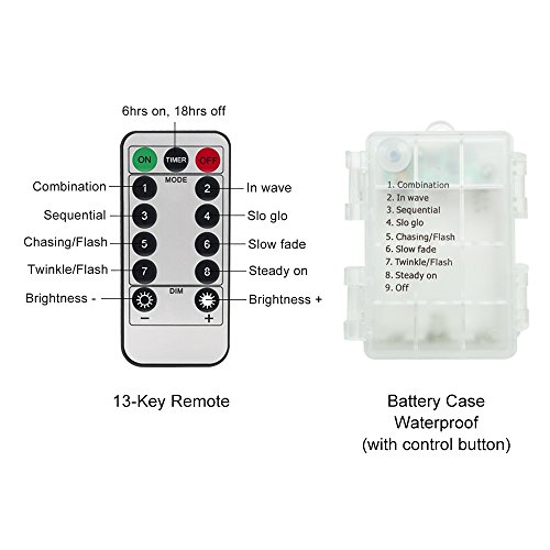 - NEWEST UPDATE VERSION:Our string lights come with a timer feature,remote control,which you can turn on/off easily. There are 8 options of lighting modes: Combination;In wave;Sequential;Slogs; Chasing/Flash;Slow fade;Twinkle/Flash; Steady On.More romantic and fashionF
