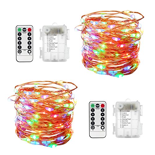 LED String Lights Multi Color Changing Fairy Lights Waterproof 8 Modes 33Ft 100 LEDs Battery Operated Lights with Remote Control for Wedding Parties Table Bedroom Holiday Festival Decorations (2 Sets)