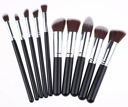LOUISE MAELYS Synthetic Hair 10pcs Makeup Brushes Set Cosmetic Brushes with Canvas Bag