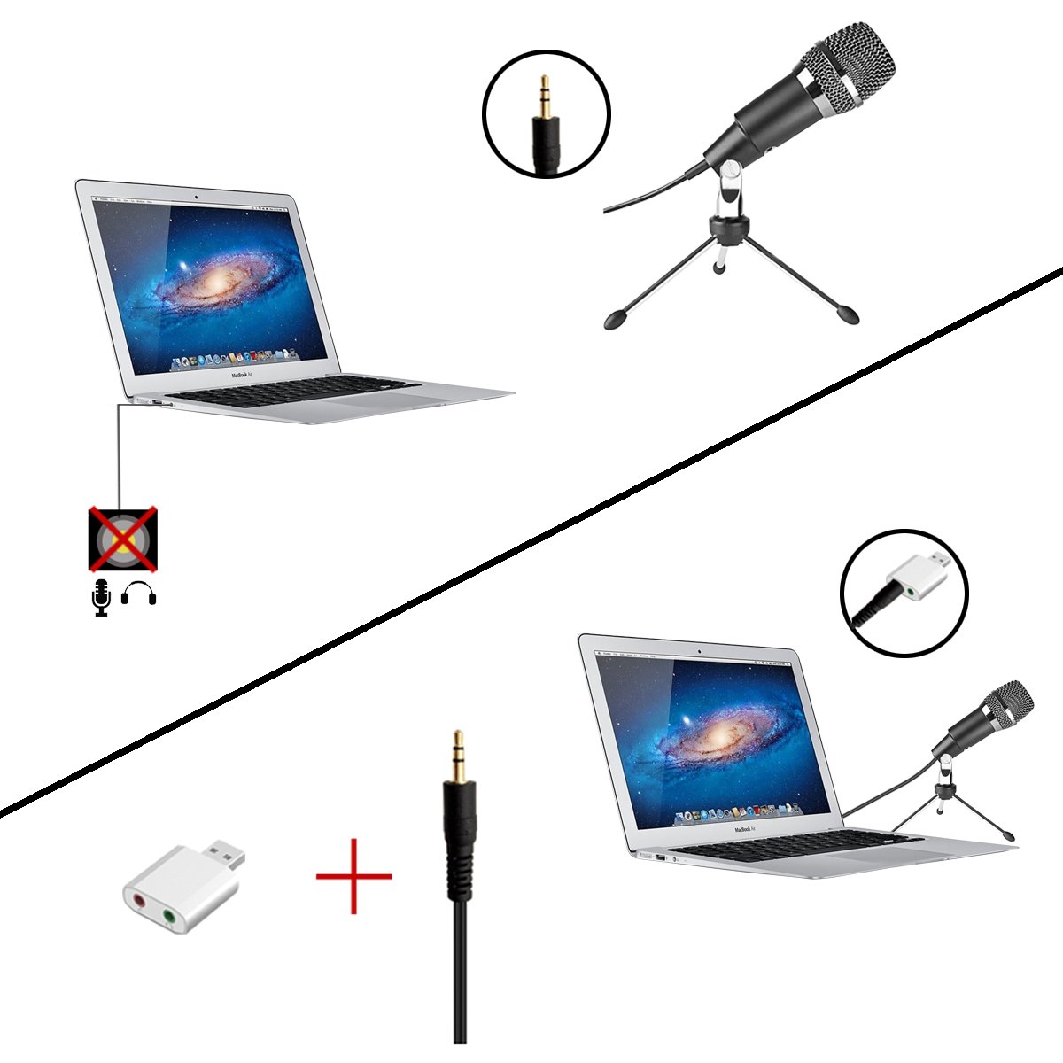 By plug-in power method, if connected to the microphone jack of the personal computer, it will be recognized as a microphone.