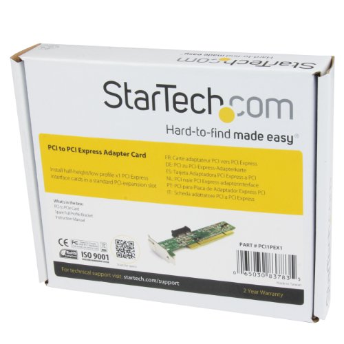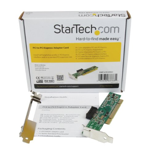 The PCI1PEX1 PCI to PCI Express Adapter card lets you use low profile PCIe expansion cards in a server/desktop motherboard PCI slot. The adapter connects through a 32-bit PCI slot to provide a low profile PCIe x1 slot in its place; a spare, full size bracket is included for installation in larger desktop or server expansion slots that can accommodate a full-sized card. The PCI to PCI Express Adapter features an innovative bracket design that adapts and secures the low profile PCI Express card into the converted slot, ensuring a versatile and economical solution for extending the usability of older PCI motherboards or using low profile PCIe cards that do not have PCI equivalents.Feature