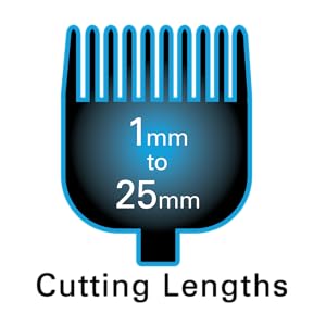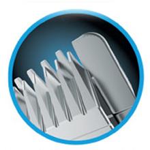 | Tower lever With the attachment lever、 the length of cuts between attachment comb lengths can be set quickly and easily、 without having to change the attachment combs. Set the tower lever to an even shorter length to optimize neckline and hair straps. | Precision ground blades The powerful Powerdrive TM motor and professional precision ground blades allow you to cut even thick hair effortlessly. | Cut lengths 8 individual crimping combs for cut lengths of 3、 6、 10、 13、 16、 19、 22 and 25 mm、 slide-on combs for right and left ear and blade length: 1 mm. |