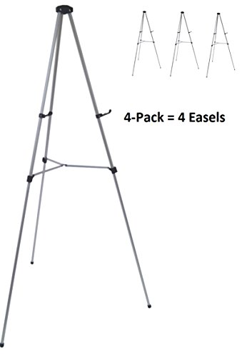 Lightweight Aluminum Telescoping Display Easel, Silver (4 pack)