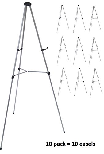 Lightweight Aluminum Telescoping Display Easel, Silver (10 pack)