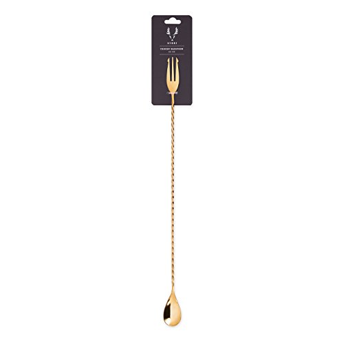 Studio : Viski Publisher : Viski Binding : Kitchen Product Description Designed for the quickest sizzling and stirring, our Gold trident bar spoon spins its way from a smoothly concave spoon bowl to a forked tip at the stem's far end. An aesthetic nod to the nautical, the trident also works for spearing the perfect garnish to cap your drink. 0