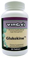 Glukokine 60 tabs Dietary Supplement The ingredients found in Vinco s Glukokine have been shown to be beneficial in promoting healthy blood sugar management thus improving glucose transport to improve regulation of sugar metabolism for reduced insulin resistance. Directions for Use: As a dietary supplement for adults and children twelve or more years of age. Take one pH sensitive tablet 15-20 minutes before large meals twice daily or as directed by a qualified healthcare professional. Up to three tablets may be taken daily (one before each meal) under the supervision of a qualified healthcare professional. Supplement Facts Serving Size: 1 Tablet Servings per Container: 60 Amount per Serving Chromium (as Chromacin GTF) 250 mcg Bitter Melon Concentrate 750 mg (10% charantin) Other Ingredients: Cellulose Croscarmellose Sodium Silicon Dioxide Vegetable Stearate No Wheat No Gluten No Corn No Dairy No Soy Yeast Free Precautions: Do not take if you are pregnant or nursing. Consult a healthcare professional before taking Glukokine if you are taking diabetes medication. These statements have not been evaluated by the FDA. This product is not intended to diagnose treat cure or prevent any disease. KEEP OUT OF REACH OF CHILDREN. Tamper resistant. Do not purchase if seal is broken. Store in a cool dry place.