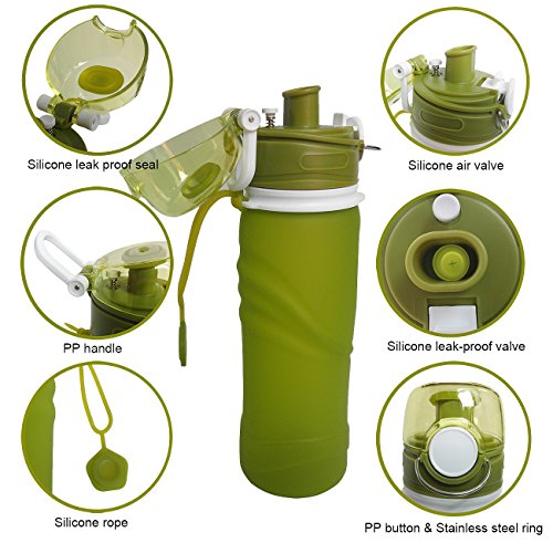 【LEAK-PROOF & HEAT-PROOF】 - Twofold leak-proof with silicone, one dust-proof cup and one air evacuation valve. Range of temperatures from -40°C to 200°C with the silicone body of this collapsible water bottles and -40°C to 120°C with the bottle cap