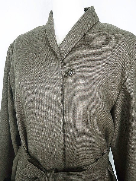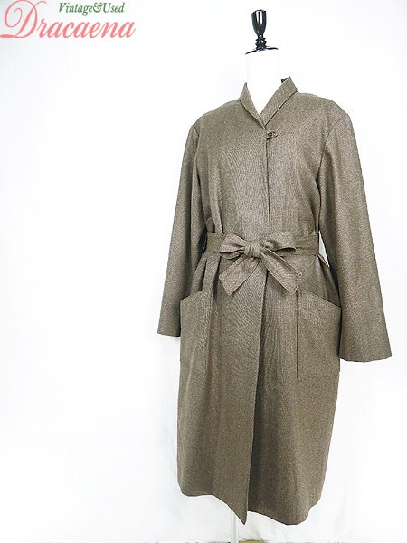 Ladies ブランド- カラー茶 メール便不可 コンディション★★★ モデル- 素材- 表記サイズ- スタッフコメント裏地付き、タグなし。共布ベルト付き。ハンドメイドのような丁寧な作りのコートです。 実寸サイズ 着丈 119 cm 身幅 57 cm 肩幅 45 cm 袖丈 62 cm ※ウエスト・ヒップ以外は平置き採寸
