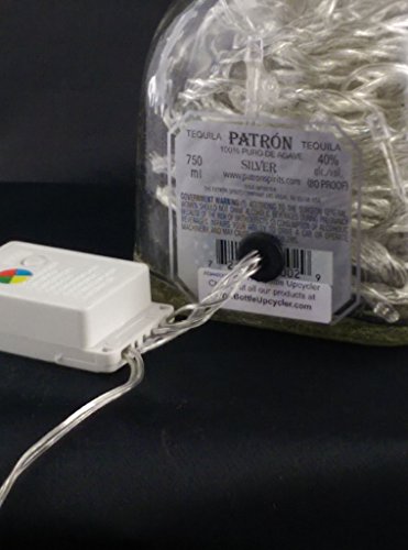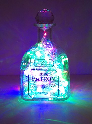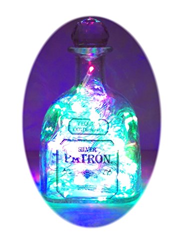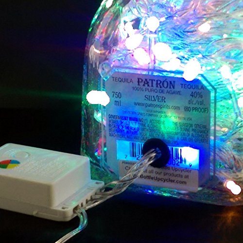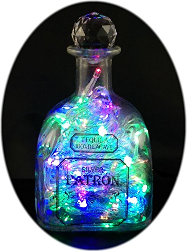 UPCYCLED PATRON TEQUILA BOTTLE MOOD THERAPY LIGHT WITH 100 MULTI-COLORED LED'S TOPPED OFF WITH AN ASFOUR 30% LEADED CLEAR CRYSTAL PRISM BALL