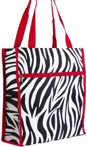 -. Binding : Apparel -. Brand : World Traveler -. ClothingSize : Medium -. Color : Zebra - Red -. Department : womens -. EAN : 0702142007502 -. Feature : Exterior Netting Water Bottle End Pocket / Silver Pewter Hardware / Main Zipper Closure / Two Exterior Pockets, One Zippered, One Velcro Closure / Attachable Coin Purse -. Model : TH3013-163-R -. MPN : TH3013-163-R -. NumberOfItems : 1 -. PackageQuantity : 1 -. PartNumber : TH3013-163-R -. ProductGroup : Apparel -. ProductTypeName : BAG -. Size : Medium -. Title : World Traveler Zebra Print Medium Travel Tote Bag, Black and White with Red Trim -. UPC : 702142007502