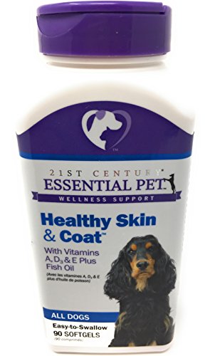 Healthy Skin and Coat - Level 2 with Vitamins A, D & E Plus Fish Oil 90 Softgels A dog having a dull, lifeless coat and itchy, irritated skin is uncomfortable and potentially harmful to the dog if left untreated. Healthy Skin and Coat supplement for dogs contains a special blend of nutrients specifically blended to address the nutritional needs that contribute to a dog's shiny, lustrous coat and healthy, smooth skin. Without a healthy skin and coat, pets are at risk for numerous medical problems. Healthy Skin and Coat for dogs provides essential nutrients, vitamins and minerals that work to promote healthy skin and a shiny, lustrous coat. Guaranteed Analysis (per softgel): Vitamin A (min) 400 IU, Vitamin D3 (min) 100 IU, Vitamin E (min) 4 IU, Eicosapentaenoic Acid (EPA) (min) 180 mg, Docosahexaenoic Acid (DHA) 120 mg. Ingredients: Fish oils (source of omega-3 fatty acids), gelatin, glycerin, water, dl-alpha tocopheryl acetate (source of vitamin e), vitamin a palmitate, vitamin d3. Suggested Use: One (1) softgel per 30-60 lbs daily. Made in the USA.Feature