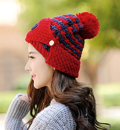 -. Binding : Apparel -. Brand : Smile YKK -. ClothingSize : Small -. Department : womens -. Feature : Material:Wool blended / This oversized beautifully crocheted cable knit beanie comes in a fashionable ridged design / This excellent fashion accessory help keep your head and ears warm in cold weather for outdoor activities. / Foldover style beanie which thick, chunky knitted construction for comfort and warmth. / Knitted design, soft and warm for winter wearing.Bright colors, make you happy to spend the winter cold. -. ProductGroup : Apparel -. ProductTypeName : HAT -. Size : Small -. Title : Smile YKK Women Warm Beard Pattern Stripe Pom Pom Knit Beanie Mask Earflap Hat