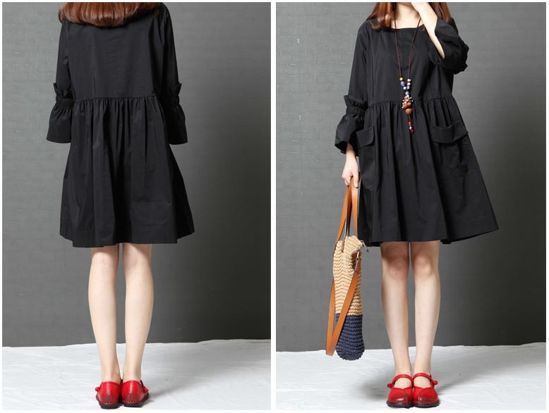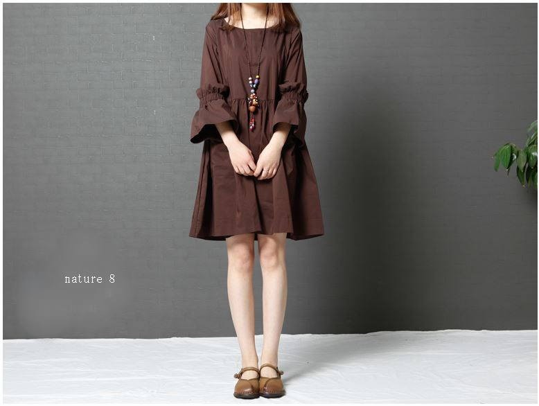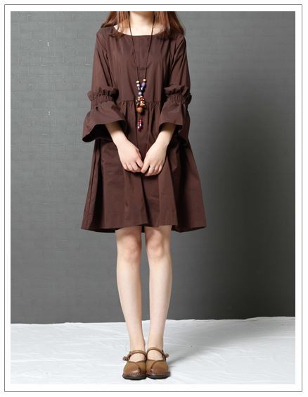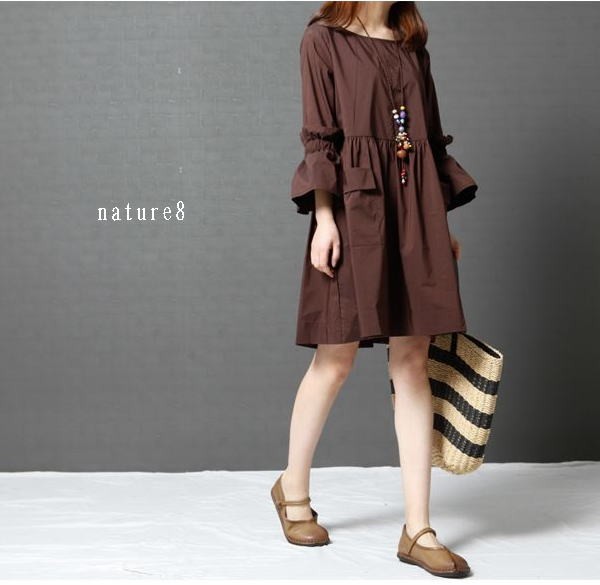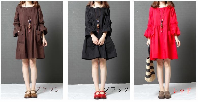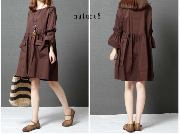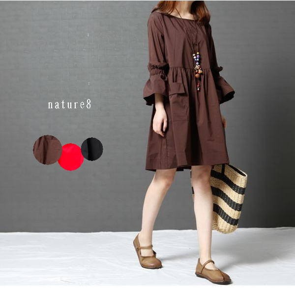 ふわっとした袖デザインが可愛いワンピースナチュラルなAラインシルエットでナチュラル感たっぷりな1枚ストンとした落ち感で綺麗なラインに♪タイト過ぎない程よいゆとりが着心地をプラス