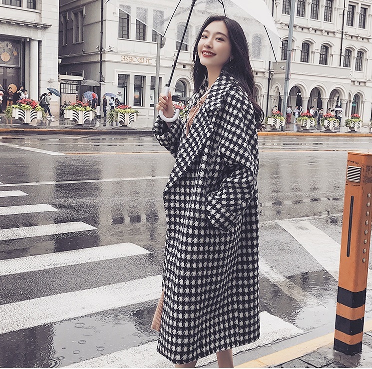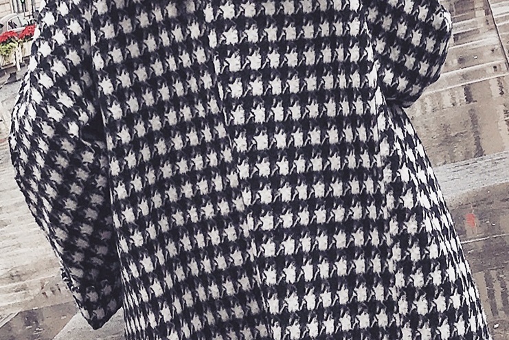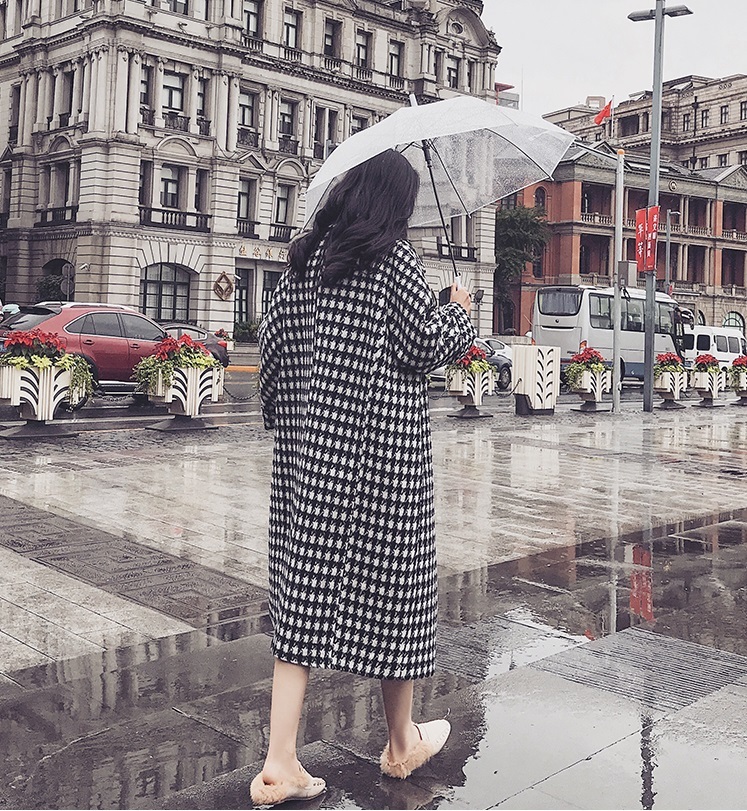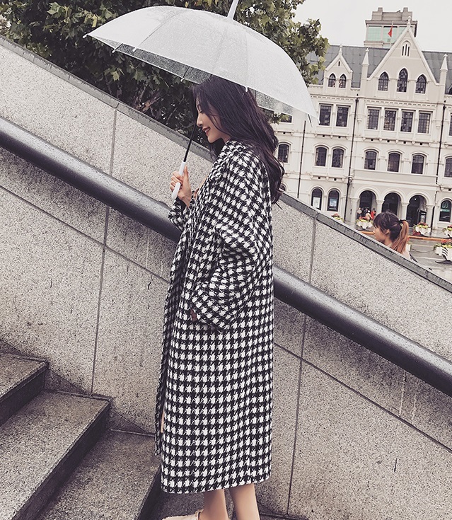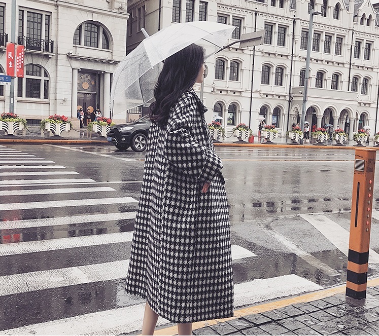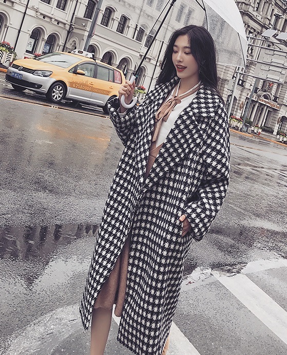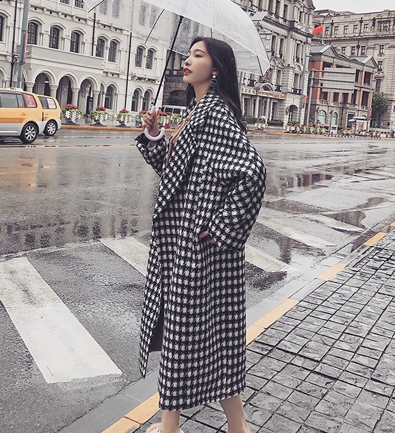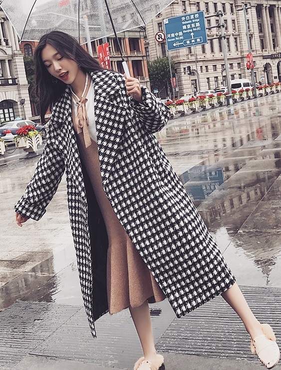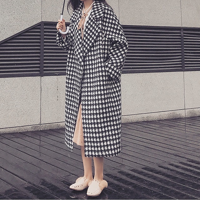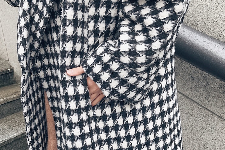 定番人気の千鳥柄がおしゃれなきれいめロング丈コート。