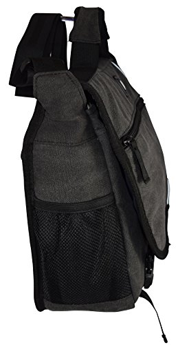 - Feature : Material: High density canvas. / Soft Grip Padded Handle and shoulder strap. Front pocket with zipper closure. / Protective Pocket for Notebook Computer fits most laptops with up to 14.1" screen. Computer pocket dimensions: 13.5" L x 1.5" W x 10" H / Exterior dimensions: 15" L x 13" H x 5.5" Wide. Essentials Organizer Compartment / Easy access mesh side pockets. Secure Buckle Closure. Open top pocket under flap.
