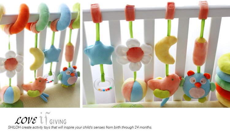 也可以挂在婴儿车上,缤纷色系,吸引宝宝抓取,锻炼动手能力。