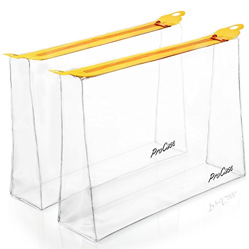 ProCase TSA Approved Clear Travel Toiletry Makeup Bag Pouch, Handy Quart-sized Zipper Bag Airport Flight Compliant Carry-on Clear Bag (2 Pack)