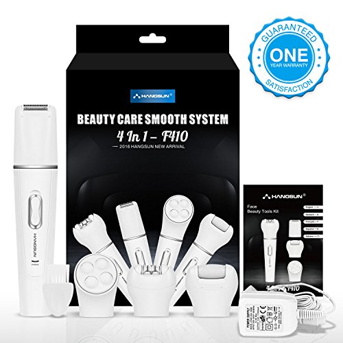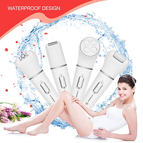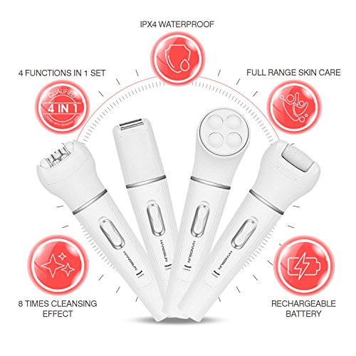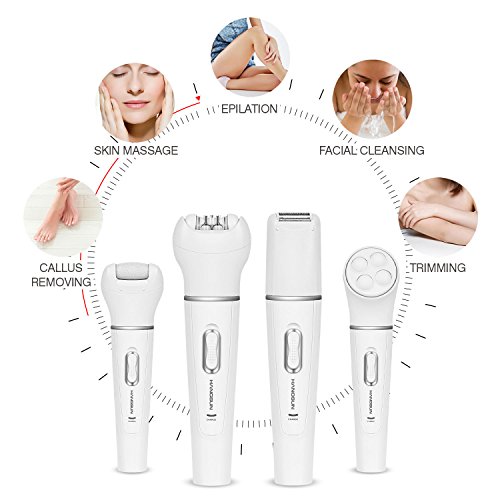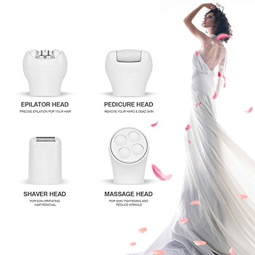 【4 Functions in 1 Set】Includes 1 x Facial Epilator head, 1 x lady shaver head, 1 x hard skin remover head, 1 x facial massager head. Easy replacement with different heads for different functions.