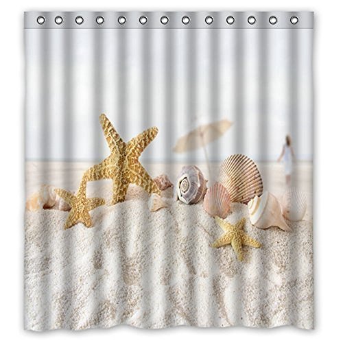 JackieTD Unique Star fish sea shell beach Shower Curtain Custom fabric 72 X 72 Inches Bathroom Decor Shower Curtain