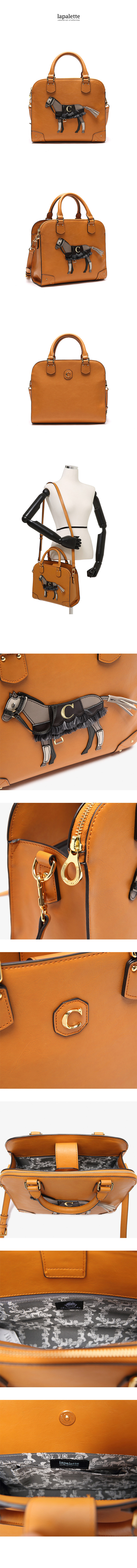 Detail | lapalette sestscasual cute style, followed by ‘ORIGINAL HORSE SQ TOTE BAG’ featuring its square shaped body with the brand iconic horse motif. The round edged body and the bottom corner patch with stud createa small touch of girlish vibe. Easy-to-carry bag with the perfect size to fit A4 and the well-organized interior. Added an adjustable and detachable strap to be carried as a tote bag, or as a shoulder bag. This basic unique style of bag is a perfect match for causal or semi-formal outfits.