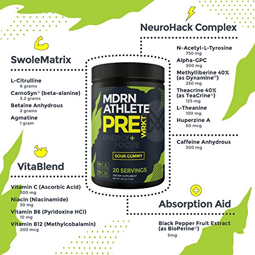 -. Title : MDRN Athlete PreWRKT, Pre Workout Supplements featuring Dynamine, TeaCrine, L-Citrulline and more for Energy, Focus, Strength, and Endurance