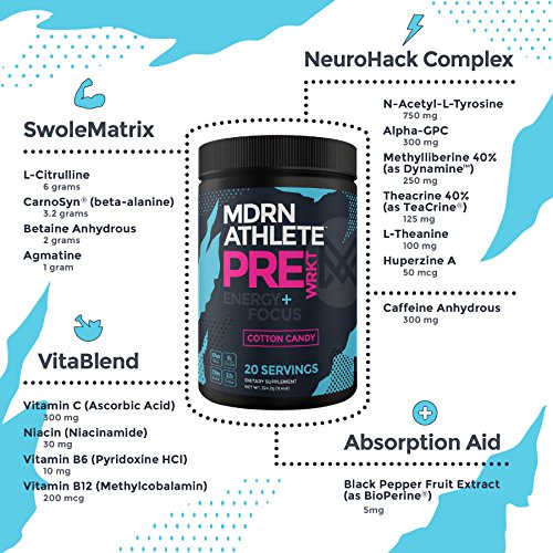 -. Feature : BEST PRE WORKOUT SUPPLEMENTS for energy, focus, strength, power, and endurance. / CLINICALLY DOSED with key ingredients including l-citrulline, CarnoSyn, Teacrine, and Dynamine. Creatine-free: No water retention or bloating. / TOP PRE WORKOUT for bodybuilding, powerlifting, crossfit, and muscle building. / NOOTROPIC blend aids in laser focus with Dynamine, caffeine, Teacrine, apha-gpc and theanine. / NITRIC OXIDE (NO) BOOSTER utilizing full doses of l-citrulline and agmatine to enhance blood flow and skin-tearing pumps.