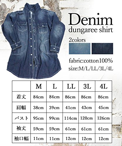 -. Feature : 「さらりと着れて美シルエットデザイン」チュニック丈ダンガリーシャツです。カラーはブルーとネイビーの2色、サイズはM・L・LL・3L・4Lの5サイズと幅広くご用意しております。ちょっとしたお出掛けにもさらっと羽織れてコーディネートもばっちりきまります。 素材:コットン100%  ※モデルの身長:159cm 撮影時Mサイズ着用。 / サイズ:【M】着丈85cm 肩幅38cm 身幅47.5cm 袖丈59cm【L】着丈85cm 肩幅39cm 身幅49.5cm 袖丈59cm【2L】着丈87cm 肩幅41cm 身幅57cm 袖丈61cm【3L】着丈87cm 肩幅43cm 身幅60cm 袖丈61cm【4L】着丈87cm 肩幅45cm 身幅63cm 袖丈61cm 商品画像と実際の色は、モニターの表示等により若干異なる場合がございます。サイズにつきましても若干の誤差が生じる場合がございますのでご了承ください。 / 程よい色落ちでこなれた感を演出してくれる上品な印象の優秀アイテム。丈が長めのチュニック丈なので脚の細見せ効果もバッチリ!程よくシェイプされたボディシルエットがゆったりなのにだらしなくない絶妙なラインを演出してくれます。コーディネートやアイテム次第で大人っぽくも演出できますので誰でも気軽にチャレンジできる大変便利なアイテムです。 / 短すぎない膝上丈もこの商品のイチオシポイント♪膝上までを隠してくれる、ゆったりとしたデザインは体型カバーにもなってくれます。 少し体型を気にしている女性、ママや主婦の方でも安心して着ていただけます。 着痩せ効果UPの程よいゆる感が、華奢見せ効果を発揮してくれます。手のひらがすっぽりと収まる大きめポケットも嬉しいですね。 / 小さいサイズから大きいサイズまで揃って春夏秋冬の季節に合わせ、10代 20代 30代 40代と高校生 大学生 社会人 年齢を問わずお洒落を楽しんでいただけます。ギフト包装もできますので彼女やお子様、旦那様への誕生日プレゼントや贈り物でどうぞ。プレゼントのギフト包装もアマゾンが行い、アマゾンプライムより送料無料で迅速に発送いたします。