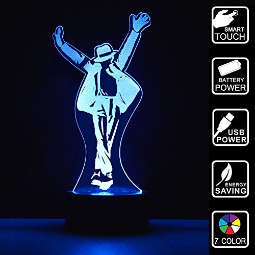 MJ Gifts Michael LED Jackson Lights Fans Dancer Michael Memory Jackson Gifts, Michael Souvenir Michael Lamp Creative Presents King of Pop Moonwalk Desktop 3D Decorative Lights for Home Party Festival