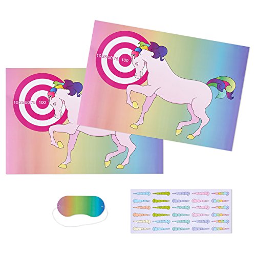 Pin the Horn on the Unicorn Party Game Activity for 30 - Deluxe Game Set Includes 2 Count Posters 24.4 x 16.5 Inches Each, 30 Horn Stickers, and 1 Blindfold Mask 7 x 3.1 Inches
