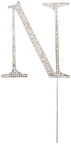 Unik Occasions Collection Crystal Rhinestone Wedding Cake Topper, Large, Letter N, Silver