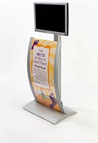 -. Binding : Electronics -. Brand : Displays2go -. Color : Silver -. Feature : Holds a 23 to 30 inch flat screen monitor that weighs less than 50 pounds. / VESA compatible with 200mm by 100mm measurements. / Locking wheels make the floor-standing fixture portable. / 4 Plastic strips protect wires while keeping them hidden on the backside of the pole. / Displays2go SKU#: AVCV2010 -. Label : Displays2go -. Manufacturer : Displays2go -. Model : 10813 -. MPN : 10813 -. PackageQuantity : 1 -. PartNumber : 10813 -. ProductGroup : Speakers -. ProductTypeName : AV_FURNITURE -. Publisher : Displays2go -. Studio : Displays2go -. Title : Aluminum Floor TV Stand for a 23 to 30 inch Monitor, with Curved Poster Frame (Graphics Not Included) - Silver